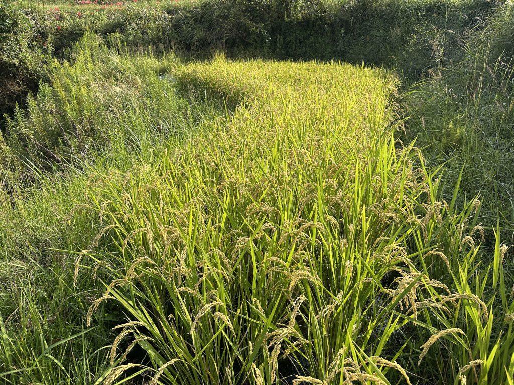 他の田んぼに比べ、もともと緑が弱かったのは肥料が効いてなく、成長が悪かったせいもあるだろう。来年の施肥計画はしっかりしないと。