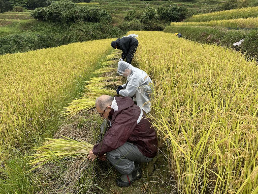 - バインダーが入ることができるように、それぞれの田んぼの前後2m程度。ボタ際、畔際を2列ほどは手刈り。