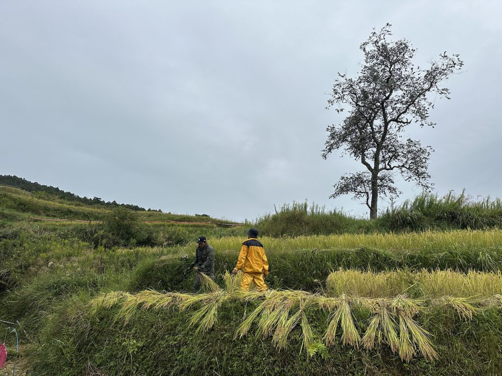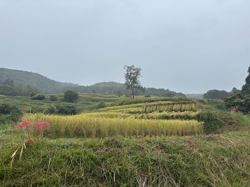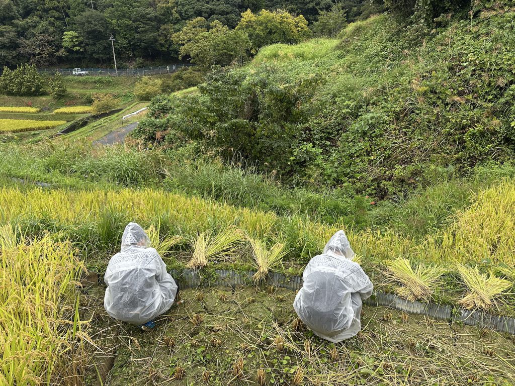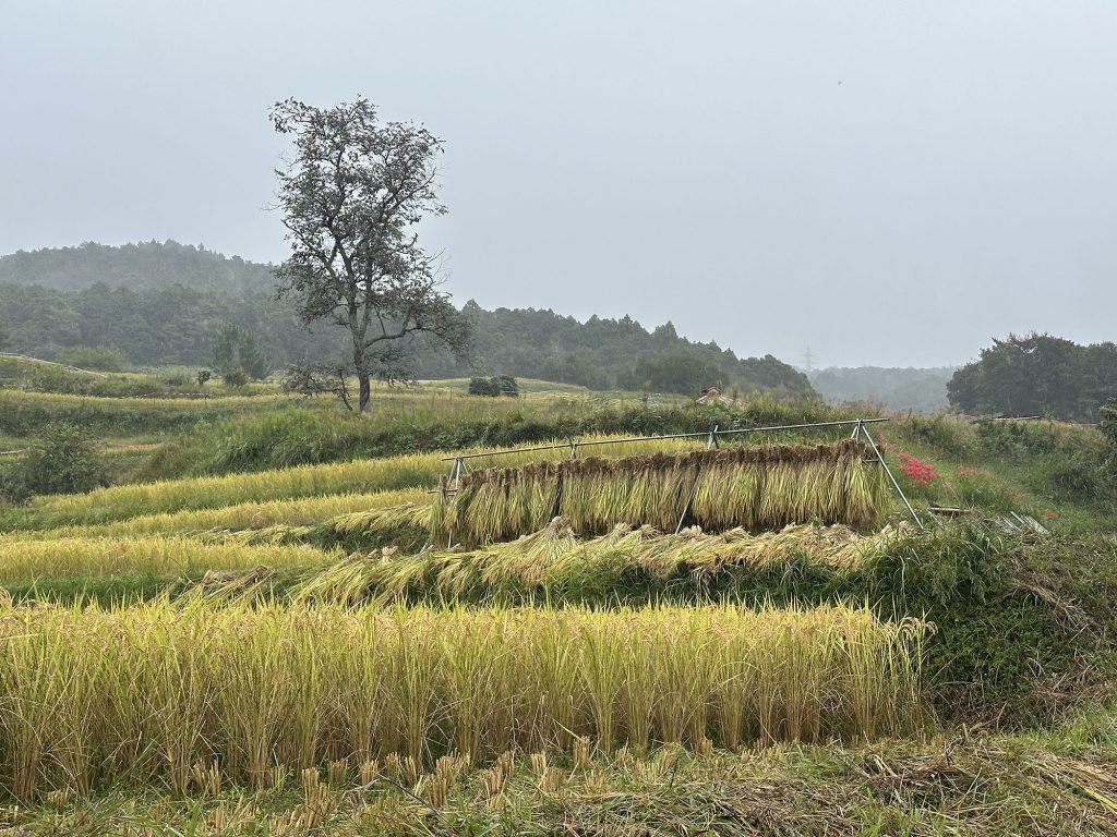 やっぱり、晴れていないと健全な稲刈り、ハザ掛けができない。濡れた稲の乾きが心配である。
