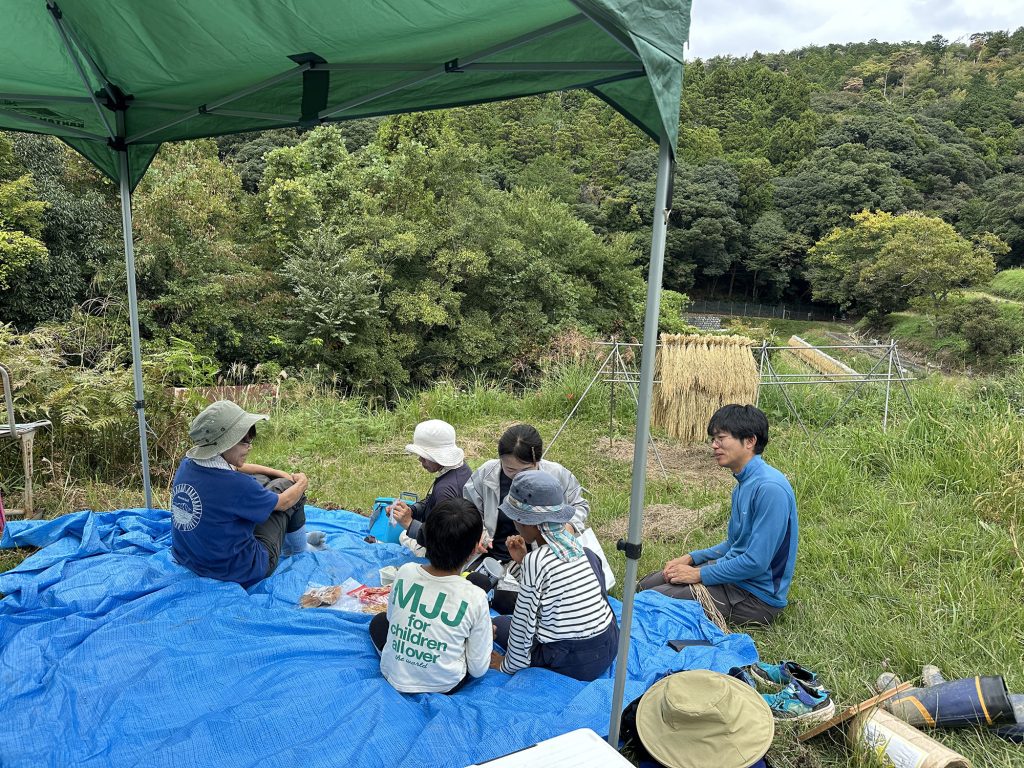 ハザ掛けのセッティングは30分。