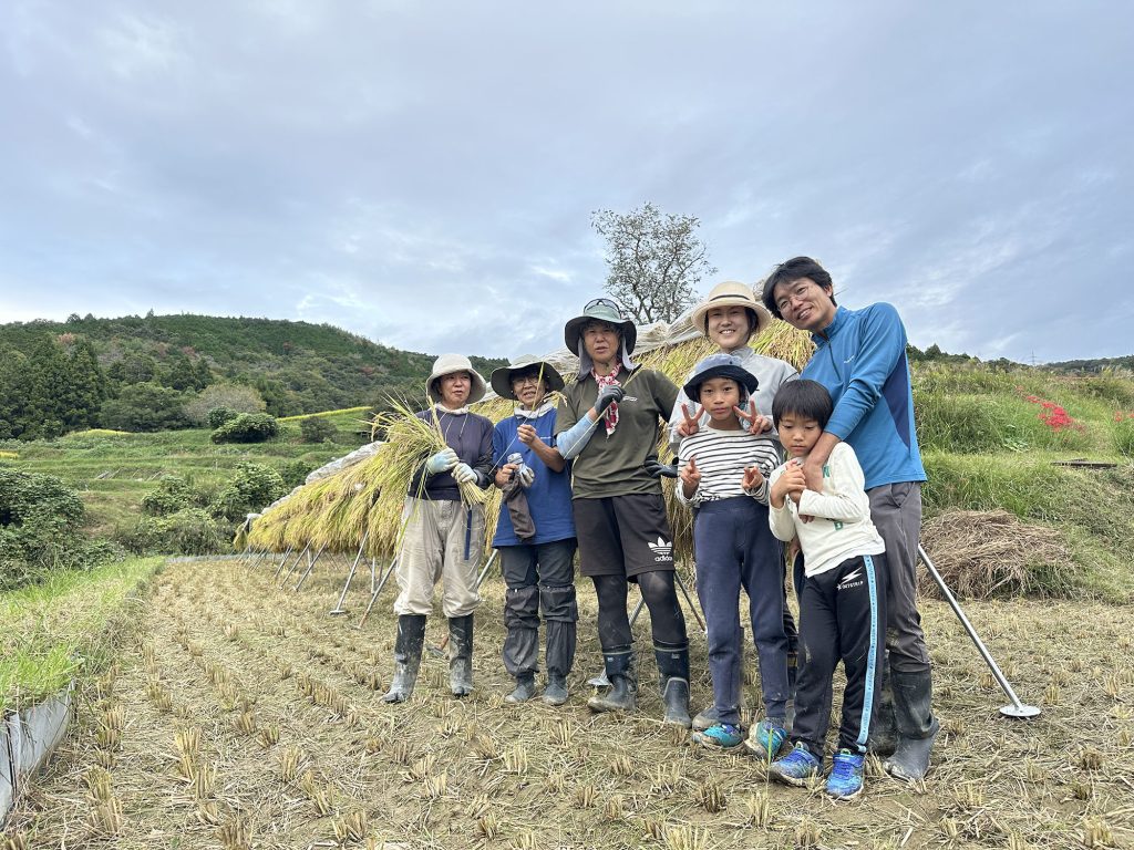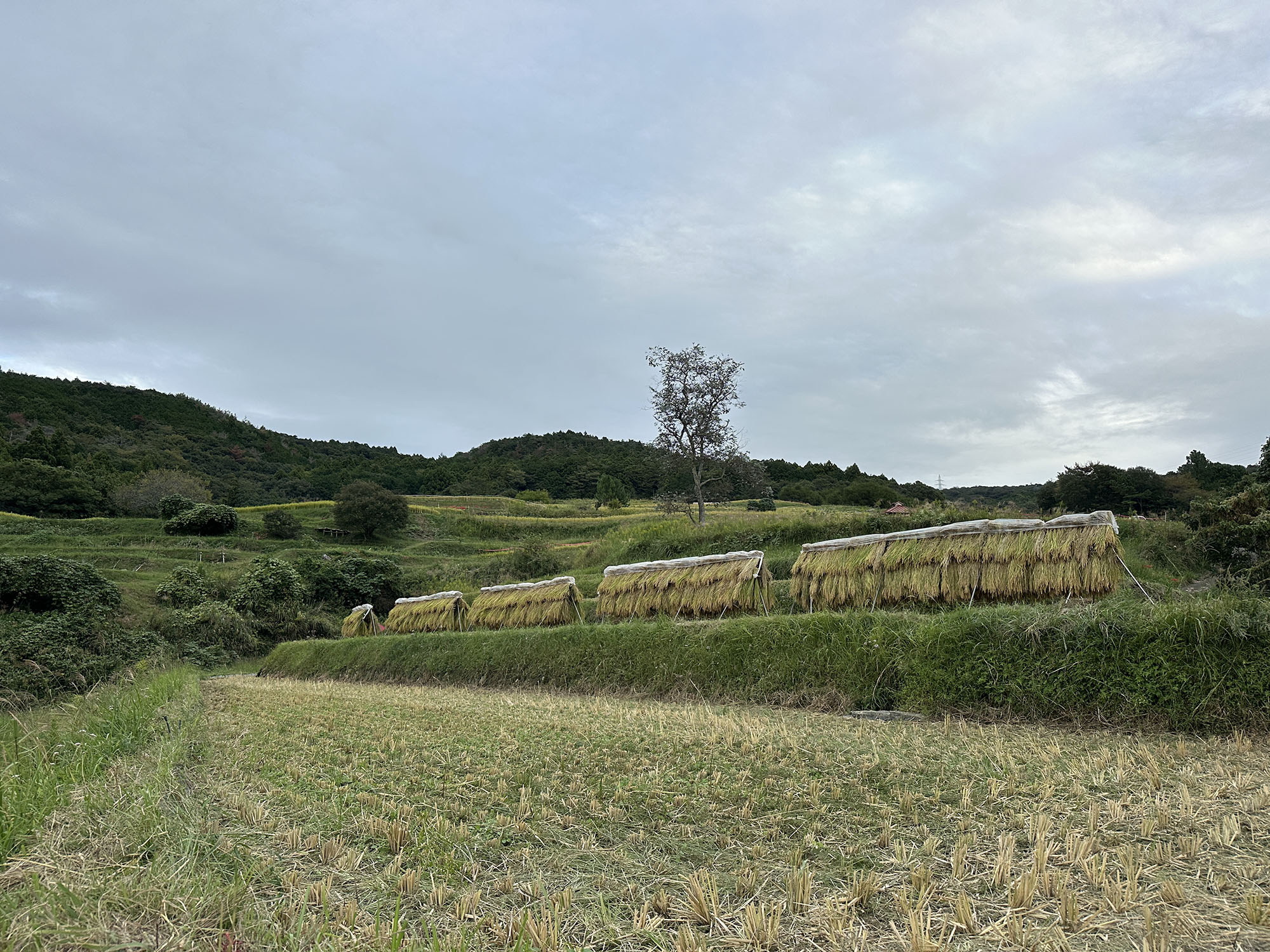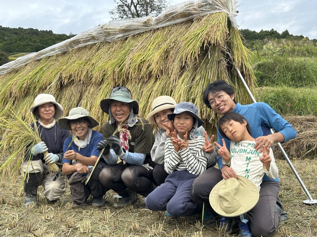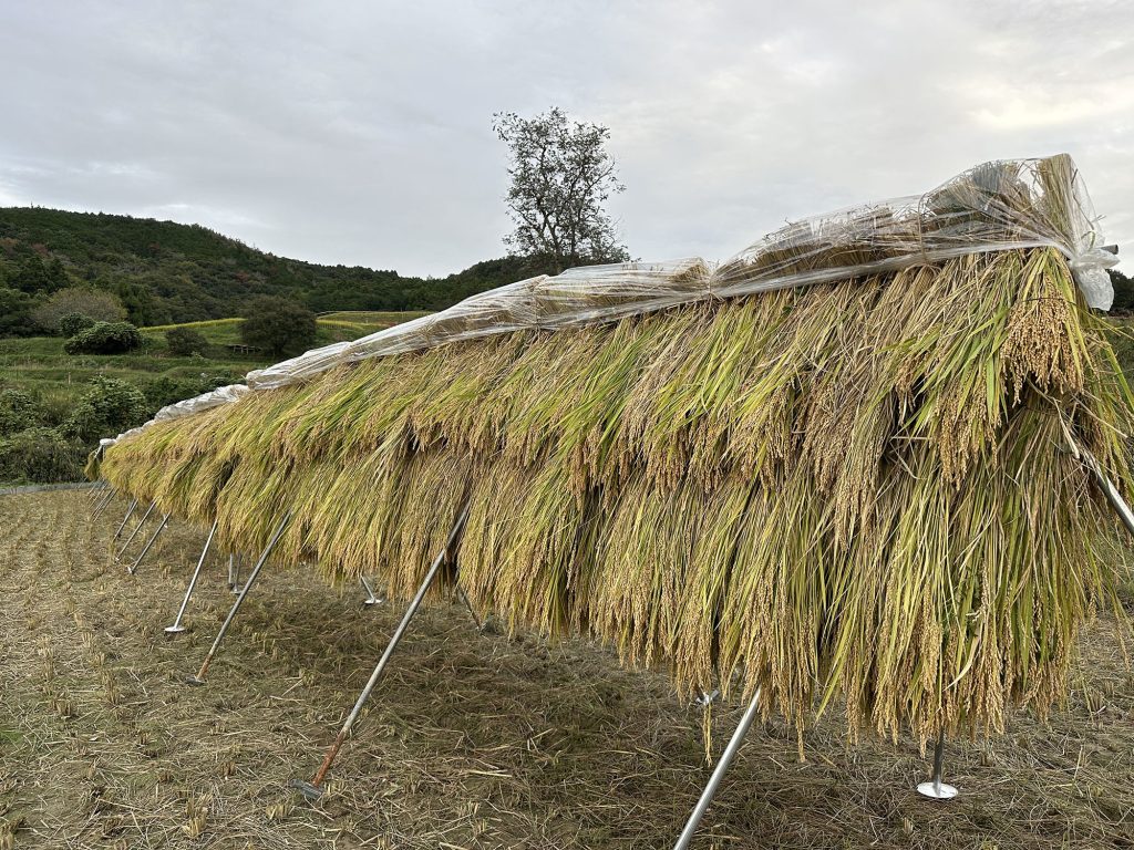 ハザ掛けが2時間ほど(藁を3番に集めるのが大変)。